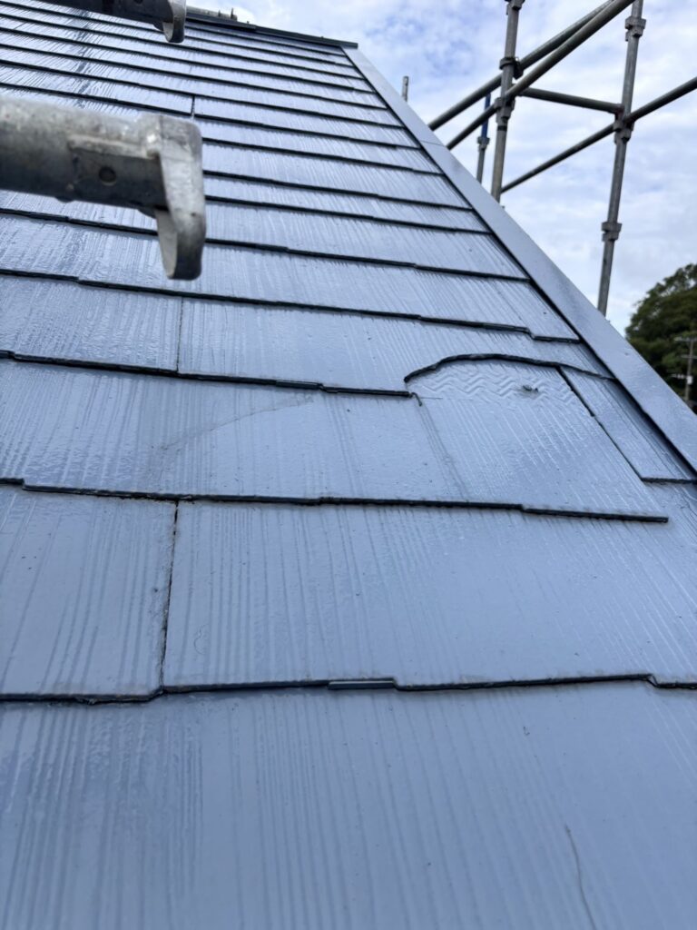 大村市 コロニアル瓦の差し替え工事 投稿日 2025年9月10日 著者 grown カテゴリー 実績 差し替え後も、既存瓦と変わらない色で塗装! 差し替え後、塗装 部分的に、コロニアル瓦が割れていました。 割れていた部分のみ差し替えを行い、目立たないように、既存の瓦と同色で塗装をしました。 ほとんど区別がつかないくらい、きれいに仕上がりました。 差し替え前 差し替え後、塗装前